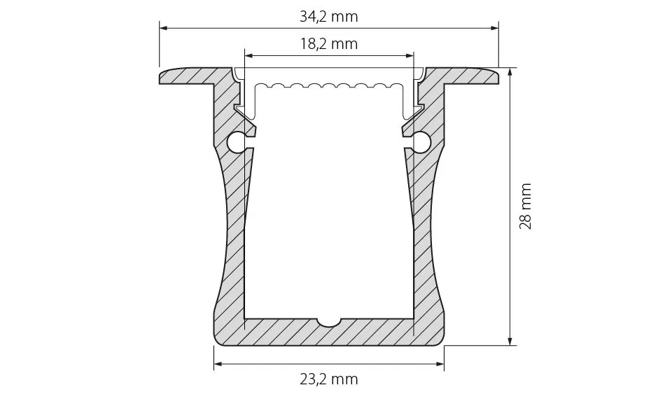Анодированный профиль 2м Wide-F 28мм встраиваемый в комплекте с матовым экраном. Для лент и линеек шириной до 18мм.