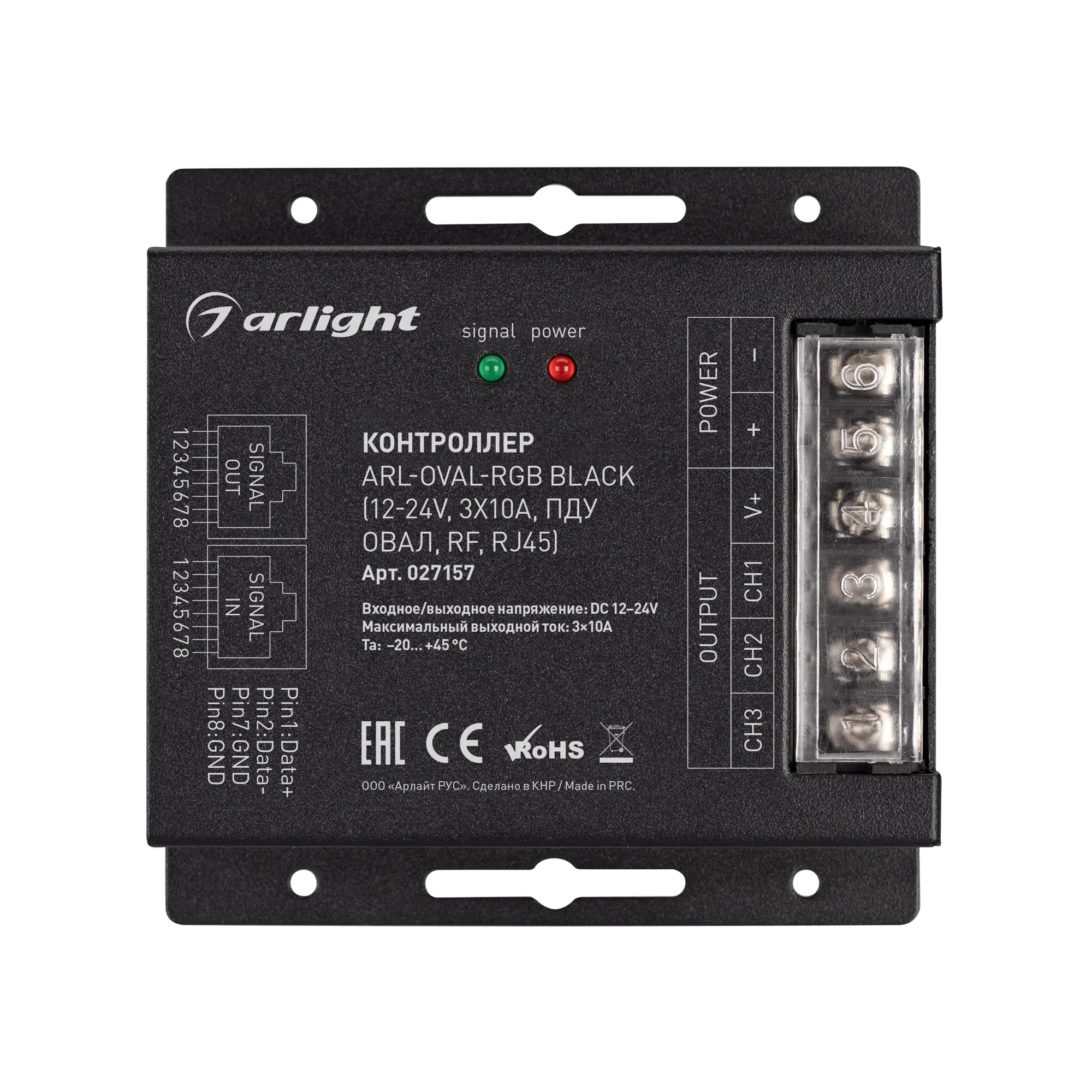 В магазине Arled Market Вы можете купить "Контроллер ARL-OVAL-RGB Black (12-24V, 3x10A, ПДУ Овал, RF, RJ45) (Arlight, IP20 Металл, 3 года)"
