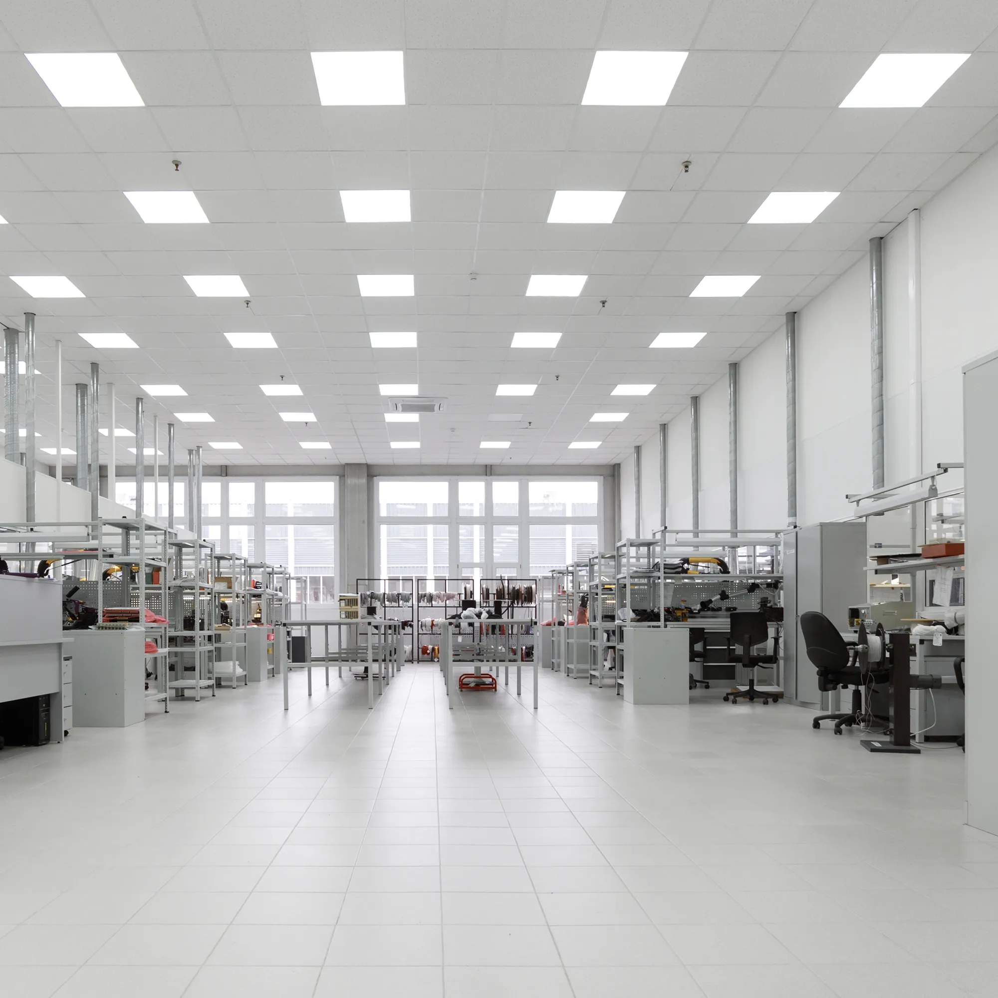 Светодиодная панель с прямой засветкой (backlit). Мощность 40 Вт, св. поток 4000 лм, 100 лм/Вт, теплый 3000 K, CRI>80, угол 120°, напряжение питания 230 В. Белый квадратный корпус из алюминия, экран PS, степень защиты IP20. Размер: длина 595 мм, ширина 595 мм, высота 31,3 мм. Монтаж встраиваемый, установочное отверстие длина 575 мм, ширина 575 мм. Драйвер 33-40 В, 1000 мА, пульсация <1%.