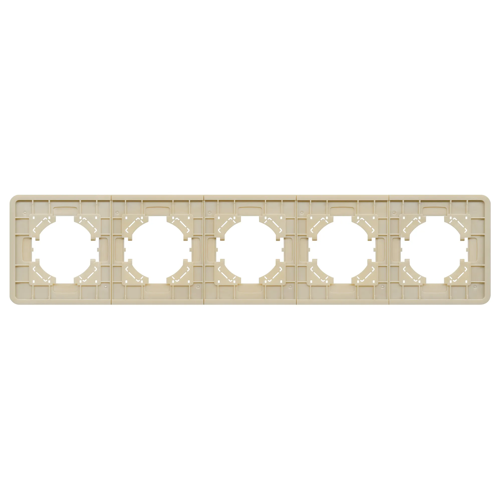 Рамка алюминиевая на 5 постов, под встраиваемый механизм. Цвет - золотой с Soft-Touch покрытием. Уровень герметичности IP20. Ориентация монтажа - горизонтальная (основным ориентиром служат посадочные выступы для накладки механизма).
