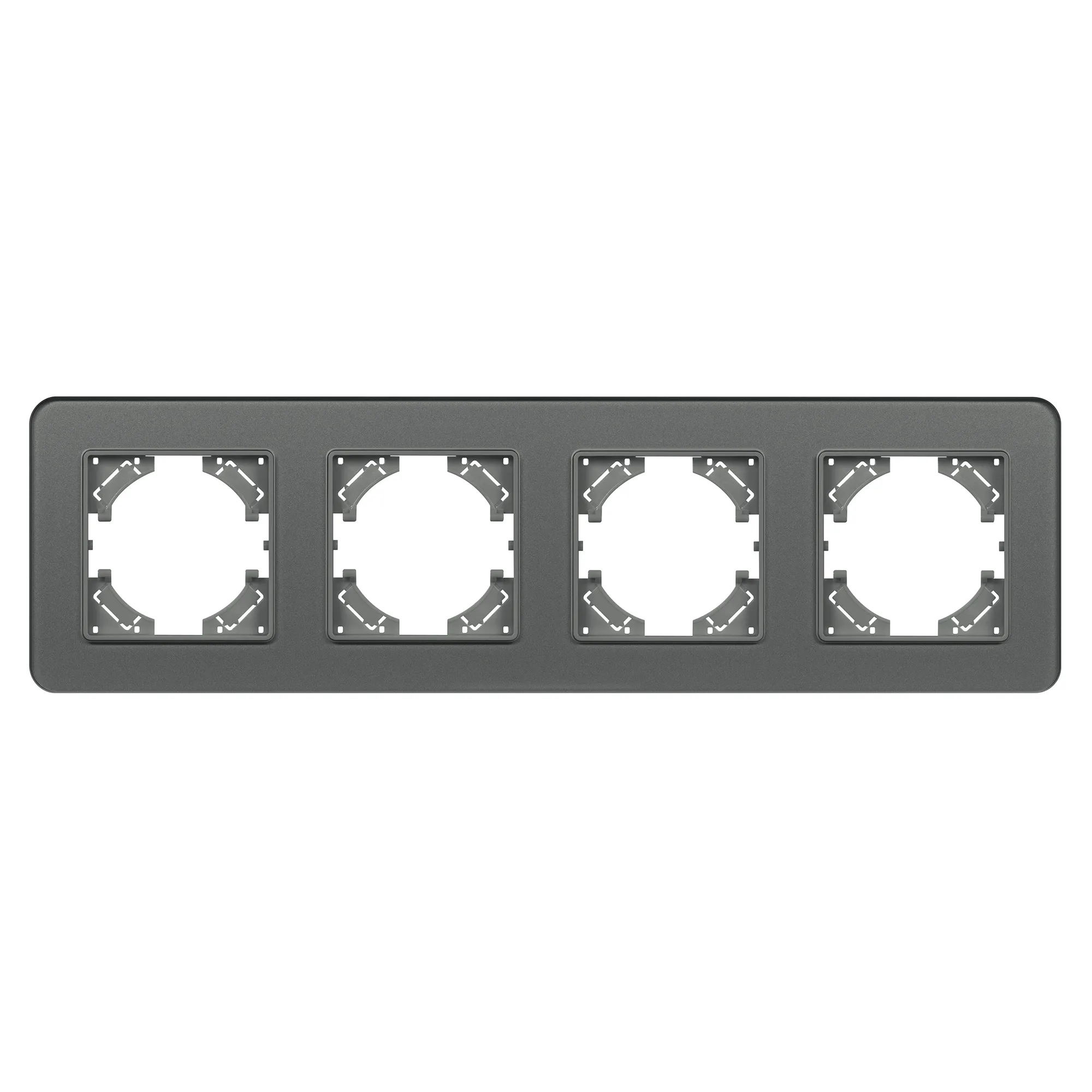 Рамка стеклянная на 4 поста, под встраиваемый механизм. Цвет - серый с Soft-Touch покрытием. Уровень герметичности IP20. Ориентация монтажа - горизонтальная (основным ориентиром служат посадочные выступы для накладки механизма).